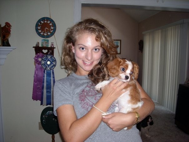 I was fresh out of college, and I remember I intentionally wore my Harvard t-shirt and pearl earrings—a twenty-two-year-old’s idea of a confidence-inspiring outfit—because I wanted to be seen as a qualified and trustworthy potential adopter. I rang the breeder’s doorbell and heard a chorus of barking within. She opened the door holding a cherub in the form of a dog—a puppy so plump, fluffy, and perfect, I forced myself not to look directly at it.